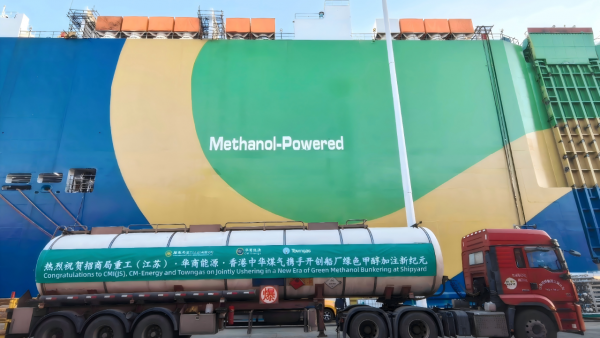 7月25日,華商能源聯合招商重工(江蘇)、香港中華煤氣,在招商工業海門基地成功為一艘正在建造過程中的甲醇動力船加注綠色甲醇。